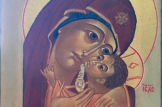 Praying with the icon of Our Lady of Korsun.