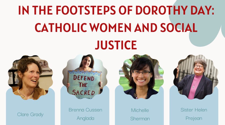 Held in honor of International Women’s Day on March 8, “In the Footsteps of Dorothy Day: Catholic Women and Social Justice” featured a panel of four women sharing how Dorothy and the Catholic Worker movement have shaped their activism: “Holding up a work of art depicting the women lamenting beneath the cross surrounded by portraits of female saints, Michelle Sherman said that one of her roles as program director for nonviolence and campus outreach at Pax Christi USA is ‘constantly reminding people in the church and outside of the church that women have been the ones who have stayed.’