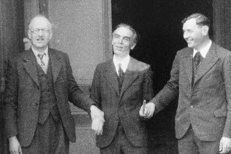 Three Righteous Among the Nations after their captivity, March 1943. From left to right: pastor André Trocmé, educator Roger Darcissac, and pastor Édouard Theis.