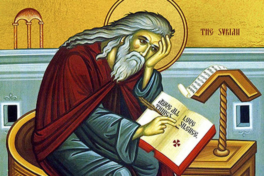 With its explication of the spiritual voyage as a threefold path of repentance, purity, and perfection—which connects back to the sixth-century Gazan monk Barsanuphius’s threefold path of rejoicing, prayer, and thanksgiving—and its link between purity of heart and luminosity of spirit, the chapter on Isaac stands out for me as the climax or crescendo of the book. I can think of few saints better equipped to heal the pains of our current age than this seventh-century solitary born in Qatar on the Persian Gulf and briefly bishop of Nineveh or present-day Mosul: the passage from his Ascetical Homilies for which he is most known, and which Worssam quotes here as being “emblematic of his whole spiritual teaching,” glows like a burning coal touched to the lips of Laudato Si’ or Teilhard de Chardin’s evolutionary spirituality: