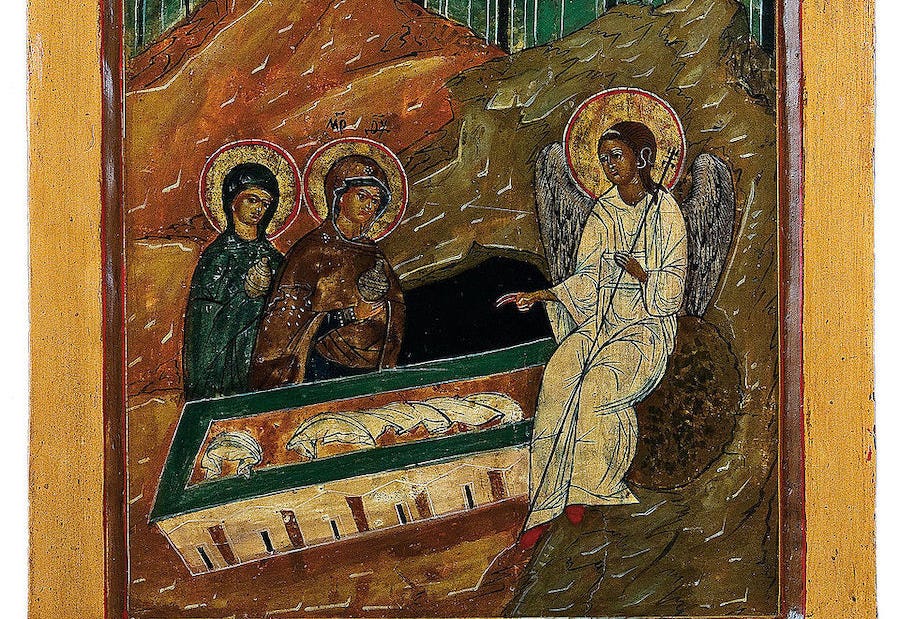 Looking ahead to this Sunday’s reading for the Easter feast of the Resurrection, one phrase leaps out at me. Mary Magdalene and Mary, the mother of James and Joseph, have just spoken with the angel who confirms that Jesus the crucified has been raised and commends them to go tell the news to the disciples. As they run from the tomb to Galilee, the evangelist describes them as “fearful yet overjoyed” (Matt 28:8)—a formulation that runs a whole gamut of emotions across the link of that little word yet.