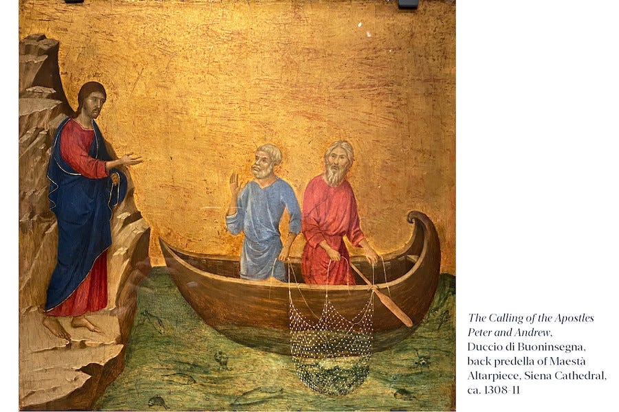 Opening meditation for Week II, a "visio divina" featuring Duccio's depiction of Peter and Andrew