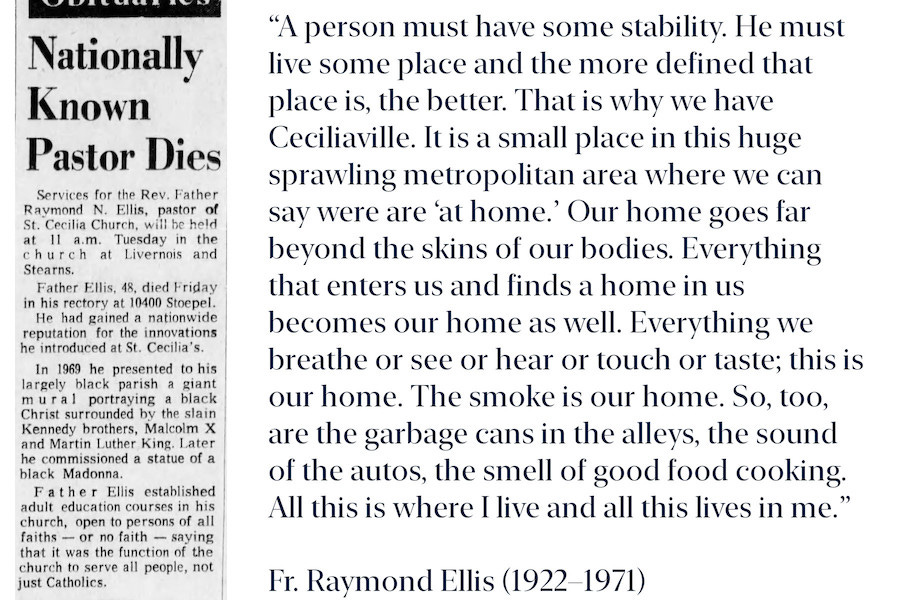 Opening meditation for Week IV; "Ceciliaville" was the name given to the parish of St. Cecilia in Detroit by Fr. Raymond Ellis as a sign of its extension into the surrounding community