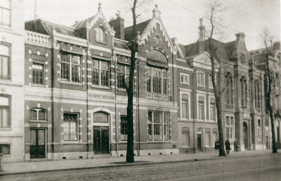 Across the street from the college was the Schouwburg, a former theatre seized by the Nazis in 1941 to be used as a deportation center. When families were arrested, they were taken to the detention center before they were sent to the death camps. The children were separated from their parents and sent across the street to a nursery on the grounds of the college. From there they would be deported and killed.
