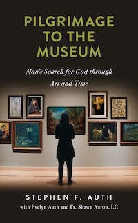 [av_dropcap2 color="blue" custom_bg="#444444"]S[/av_dropcap2]tanding in a quiet art gallery, walls hung with paintings illuminated by lights like candles shining underneath, it’s natural to get the sense that you are in a sacred place. It’s an experience not unlike being in a cathedral, taking in the majesty of tall pillars and soaring ceilings that call us to look up. Aptly, Stephen F. Auth titles his new memoir-meets-art-history commentary Pilgrimage to the Museum, highlighting the spiritual meaning that a visit to a museum can take on.