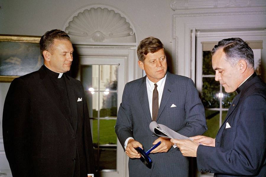 The late Hugh Crean and I were born and raised in what seemed to be the Golden Age of American Catholicism.[1] He graduated from the College of the Holy Cross in Worcester, Massachusetts, in 1958. I grew up further west, in Pittsfield, and was slated for Holy Cross (to become a priest like my uncles) but instead went to Notre Dame, graduating in 1960. That year one of our own, John Kennedy, was running for president. President Eisenhower was our commencement speaker, the baccalaureate Mass was celebrated by Cardinal Montini of Milan, who a few years later became Pope Paul VI, and our hearts were with the critically ill honorary degree recipient, Dr. Tom Dooley, whose medical service in Indochina had earned him the title “Doctor America.” Over the door of Notre Dame basilica are the words “God, Country, Notre Dame.” They fit together and we loved all three, our own Holy Trinity.