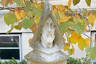 "Saint Francis freezing in his concrete skin / and within, no birds to shoulder and share . . ."